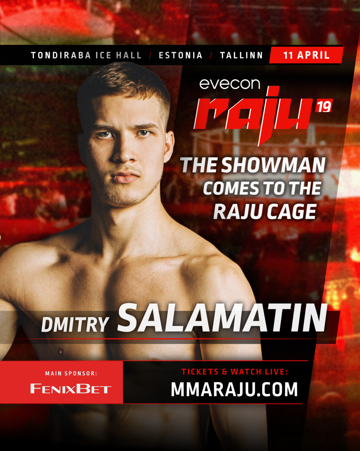 One of Estonia’s brightest and most technically refined stand-up fighters, Dmitry Salamatin, takes the next step in his career as he enters the Evecon RAJU 19 MMA cage on 11 April at Tondiraba Ice Hall in Tallinn.