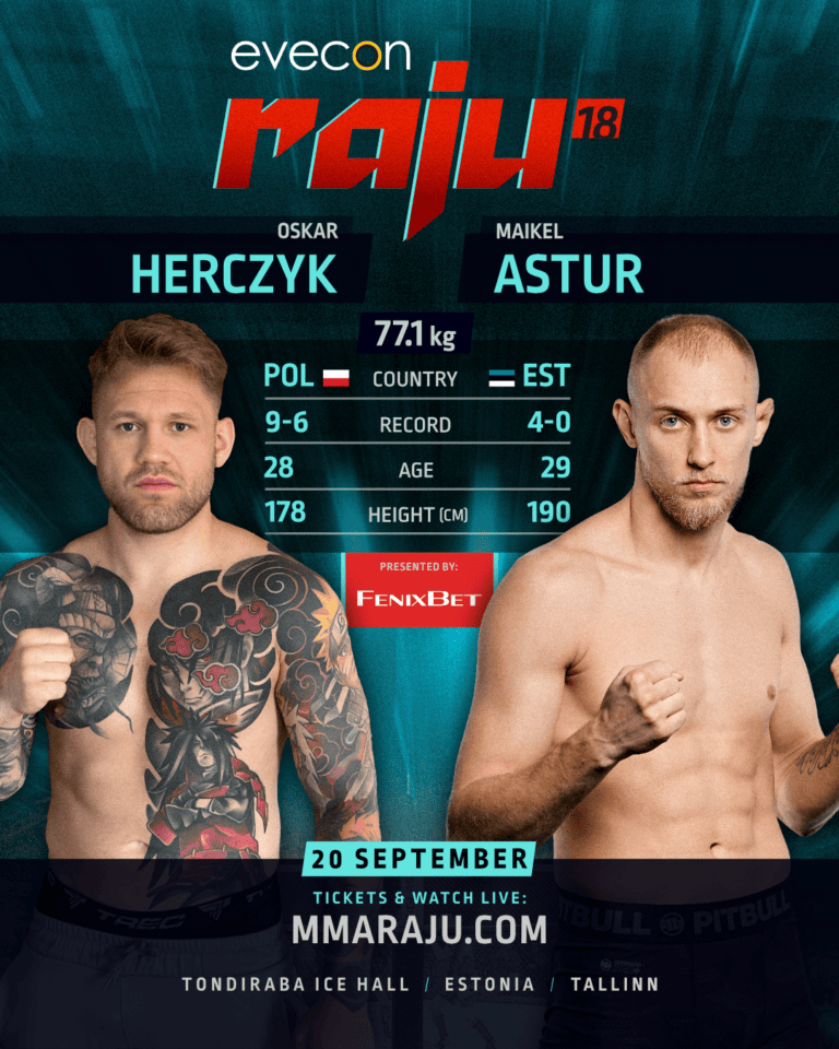 The opponent for Estonia’s rising MMA star Maikel Astur (4-0) in the main event of Evecon Raju 18 has been announced. He will…
